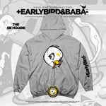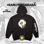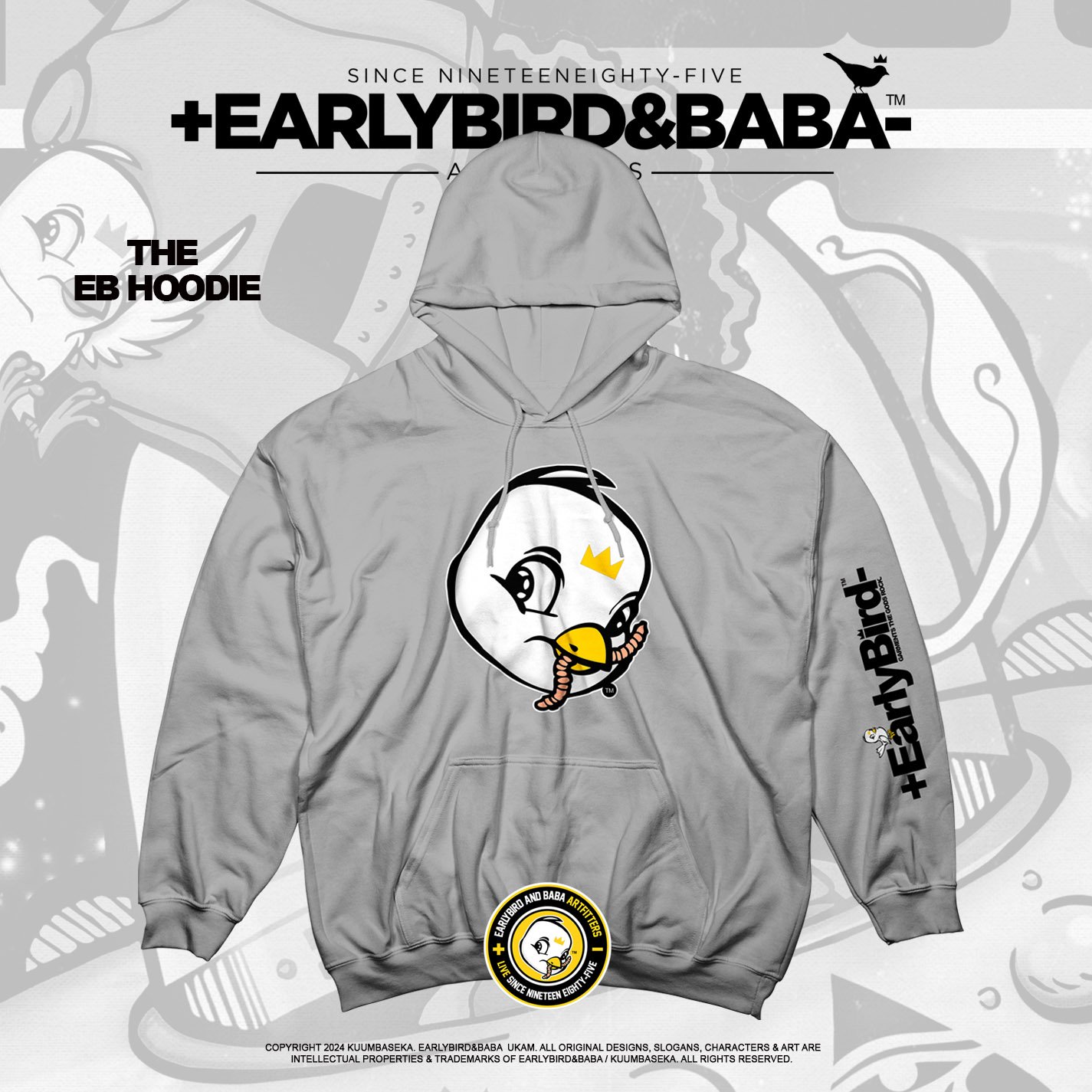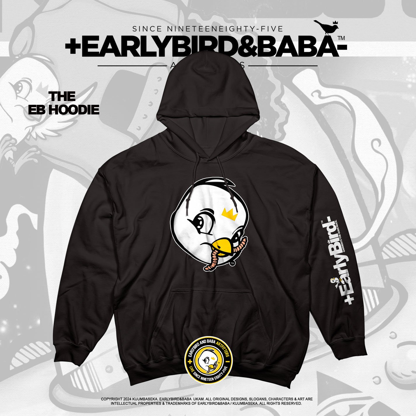 100%Cotton hoodie with print on front and EB text logo down left sleeve.